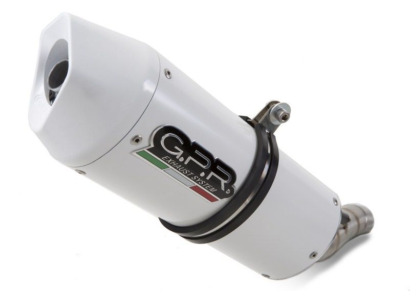 GPR EXHAUST SYSTEM COMPATIBLE FOR SUZUKI DRZ 400 - E 2000/07 0 Homologated ALBUS white albino Slip-on kit with removable db killer (baffle) for racing use,it include specific link pipe, brackets, holder and fasteners, link pipe stainless steel made (Aisi 304) and caps ERGAL made by CNC machineries while silencer body made by white albino aluminum with ceramic treatment that improve to max level warming and vibration resistance. . Developed from GPR thanks to Moto GP and SBK races experiences, the system has a oval shape, Diam. 90x120mm, medium weight about 1,75 kg depending from motorbike of destination. GPR provide original homologation documents and instructions available as drawings or video or pictures books. If item is used in homologated configuration it doesnt require mapping, it is possible use panniers and central stand and sonda lambda boss is included when necessary. Available many sound file and pictures gallery,product is hand made in Italy, produced under European directives,it is street legal and it has 2 years of international warranty
