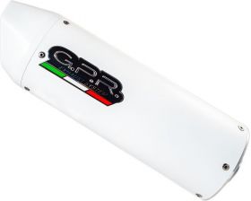 GPR EXHAUST SYSTEM COMPATIBLE FOR TRIUMPH TIGER 1200 explorer 2011/16 TIGER 1200 explorer XR - XRT - XCX - XCA Homologated ALBUS white albino Slip-on kit with removable db killer (baffle) for racing use,it include specific link pipe, brackets, holder and fasteners, link pipe stainless steel made (Aisi 304) and caps ERGAL made by CNC machineries while silencer body made by white albino aluminum with ceramic treatment that improve to max level warming and vibration resistance. . Developed from GPR thanks to Moto GP and SBK races experiences, the system has a oval shape, Diam. 90x120mm, medium weight about 1,75 kg depending from motorbike of destination. GPR provide original homologation documents and instructions available as drawings or video or pictures books. If item is used in homologated configuration it doesnt require mapping, it is possible use panniers and central stand and sonda lambda boss is included when necessary. Available many sound file and pictures gallery,product is hand made in Italy, produced under European directives,it is street legal and it has 2 years of international warranty