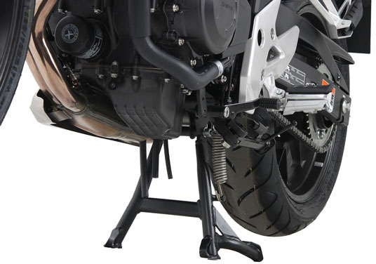 Steady. Stable. Easy to work. The HEPCO&BECKER center stands are extremely rugged and don't get in the way of your riding. The tension springs are made of stainless steel. Sophisticated geometry and anti-skid tread make it easy to stand your motorcylcle securely in any situation. The precisely manufactured stands are very stable, sandblasted, black powder coated and hold their value. Naturally, the're approved for the street. Center stands make maintainance easier and keep the bike stable, during fill-ups, for example. During winter storage, they take a load off the rear wheel.