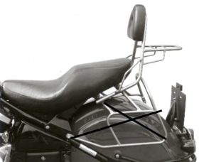 With the comfortable backrest, the passenger can relax and feel secure while riding. A HEPCO&BECKER Sissybar with a luggage rack makes it easier to carry small luggage. Optional: The aluminium rear rack enlargement for Handbags (ground and anodized, Item: 800000 00 09) ensures safe attachement.