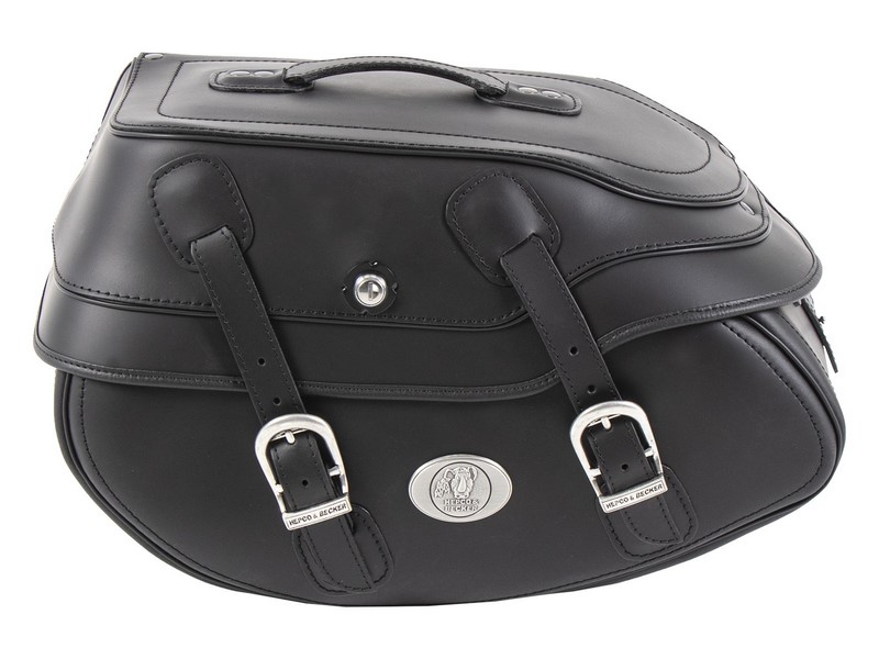 With their dynamic, timeless look, these HEPCO&BECKER saddlebags enhance any chopper. Our saddlebag leather collection is made of smooth pure 3-4mm thick cowhide with black aniline dye throughout. Extra strong, tearresistant seams for the best stability and long life. All of our saddlebags are produced especially for us in our traditional leather craft shop. The bags hold their shape extremely well thanks to hidden shape reinforcement and a plastic double rear wall - no dropping, no flapping.