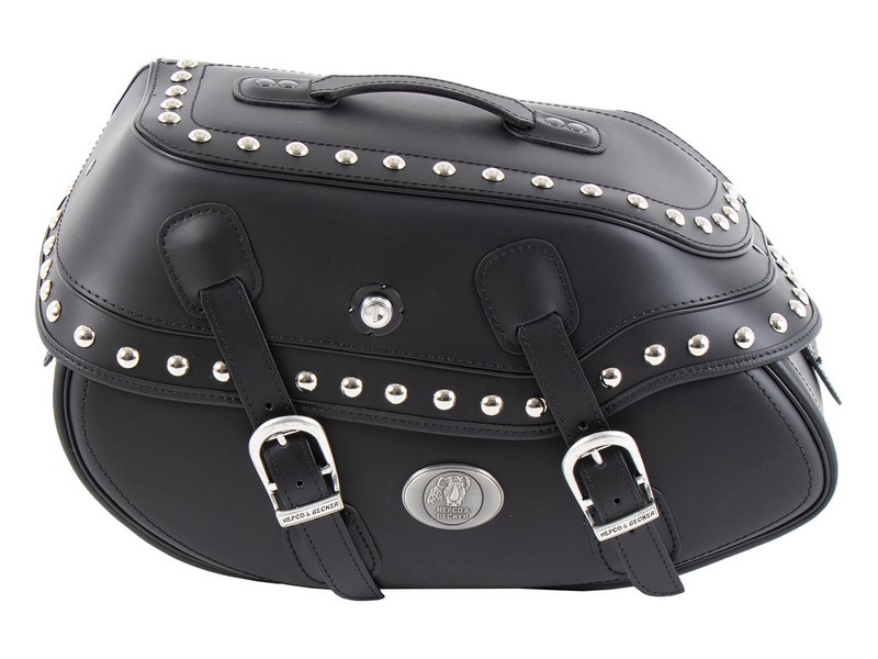 With their dynamic, timeless look, these HEPCO&BECKER saddlebags enhance any chopper. Our saddlebag leather collection is made of smooth pure 3-4mm thick cowhide with black aniline dye throughout. Extra strong, tearresistant seams for the best stability and long life. All of our saddlebags are produced especially for us in our traditional leather craft shop. The bags hold their shape extremely well thanks to hidden shape reinforcement and a plastic double rear wall - no dropping, no flapping.