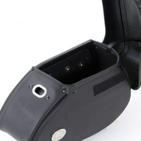 With their dynamic, timeless look, these HEPCO&BECKER saddlebags enhance any chopper. Our saddlebag leather collection is made of smooth pure 3-4mm thick cowhide with black aniline dye throughout. Extra strong, tearresistant seams for the best stability and long life. All of our saddlebags are produced especially for us in our traditional leather craft shop. The bags hold their shape extremely well thanks to hidden shape reinforcement and a plastic double rear wall - no dropping, no flapping.