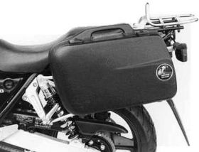 HEPCO&BECKERs standard side carriers are firmly bolted to the motorcycle. All normal hard lugagge cases from Hepco & Becker fit this carrier. The cases are fastened to the carrier by means of a quick release fastener. For this purpose, an aluminum adapter is required which is normally included within the delivery of the case. (Item number: 700114) This aluminum adapter is screwed to the rear right and left of the carrier and offer the holder for the luggage lock.