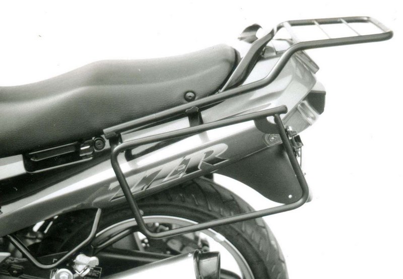 HEPCO&BECKERs standard side carriers are firmly bolted to the motorcycle. All normal hard lugagge cases from Hepco & Becker fit this carrier. The cases are fastened to the carrier by means of a quick release fastener. For this purpose, an aluminum adapter is required which is normally included within the delivery of the case. (Item number: 700114) This aluminum adapter is screwed to the rear right and left of the carrier and offer the holder for the luggage lock.
