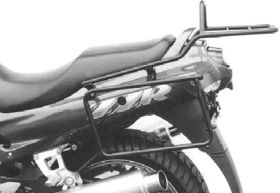 HEPCO&BECKERs standard side carriers are firmly bolted to the motorcycle. All normal hard lugagge cases from Hepco & Becker fit this carrier. The cases are fastened to the carrier by means of a quick release fastener. For this purpose, an aluminum adapter is required which is normally included within the delivery of the case. (Item number: 700114) This aluminum adapter is screwed to the rear right and left of the carrier and offer the holder for the luggage lock.