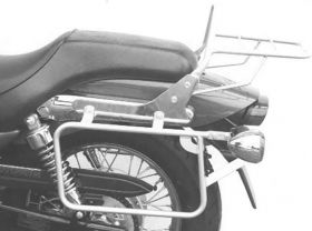 HEPCO&BECKERs standard side carriers are firmly bolted to the motorcycle. All normal hard lugagge cases from Hepco & Becker fit this carrier. The cases are fastened to the carrier by means of a quick release fastener. For this purpose, an aluminum adapter is required which is normally included within the delivery of the case. (Item number: 700114) This aluminum adapter is screwed to the rear right and left of the carrier and offer the holder for the luggage lock.