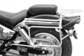 HEPCO&BECKERs standard side carriers are firmly bolted to the motorcycle. All normal hard lugagge cases from Hepco & Becker fit this carrier. The cases are fastened to the carrier by means of a quick release fastener. For this purpose, an aluminum adapter is required which is normally included within the delivery of the case. (Item number: 700114) This aluminum adapter is screwed to the rear right and left of the carrier and offer the holder for the luggage lock.