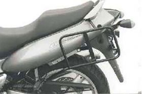 HEPCO&BECKERs standard side carriers are firmly bolted to the motorcycle. All normal hard lugagge cases from Hepco & Becker fit this carrier. The cases are fastened to the carrier by means of a quick release fastener. For this purpose, an aluminum adapter is required which is normally included within the delivery of the case. (Item number: 700114) This aluminum adapter is screwed to the rear right and left of the carrier and offer the holder for the luggage lock.