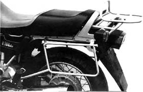 HEPCO&BECKERs standard side carriers are firmly bolted to the motorcycle. All normal hard lugagge cases from Hepco & Becker fit this carrier. The cases are fastened to the carrier by means of a quick release fastener. For this purpose, an aluminum adapter is required which is normally included within the delivery of the case. (Item number: 700114) This aluminum adapter is screwed to the rear right and left of the carrier and offer the holder for the luggage lock.