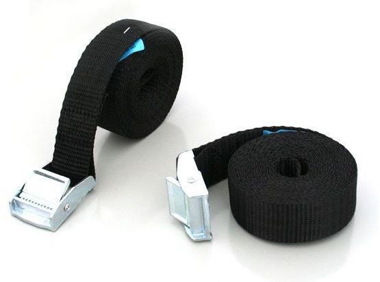 Set of 2 tie-down straps with cam buckles. Contains: 2 sturdy tie-down straps with practical cam buckles.
