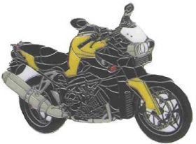 This high-quality pin shows your K1200R and it is about 26 x 37 mm.