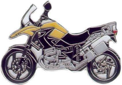 This high-quality pin shows your R 1200 GS 2008 (yellow) and it is about 26 x 37 mm.
