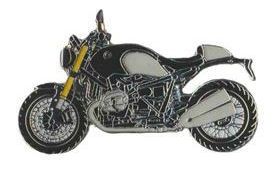 This high-quality pin shows your RnineT (side view) and it is about 26 x 37 mm.