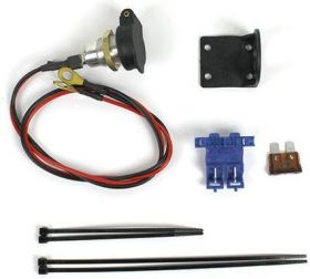 Power socket with cover and mounting bracket, 50 cm line and fuse. This accessory plug kit allows you to plug in any BMW accessory. This is a DIN or BMW standard plug. It is smaller than the SAE or cigarette lighter style plugs. It is also standard on Volkswagen buses and vanagons up to 1984.