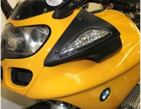 These LED indicators for the front of the BMW R1100S are sold as a pair and are available in clear or black. They include the position light (parking light). The original indicators are simply replaced by these LED indicators. The necessary electronic indicator relay is included in the shipment and has to be used for installation.