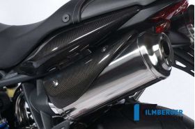 The exhaust cover in carbon for the Triumph Street Triple is a direct replacement for the original component and contributes mainly to weight saving on the motorcycle (up to 70% less) and a higher stiffness of the parts. Like all of our carbon fibre parts, it was made according to the latest protocols and industry standards and can be considered to encompass all aspects of current 'best of industry' practice. The part is made completely out of pre-preg carbon fibre materials using an autoclave. As with all our carbon parts, we use a clear plastic coating that not only improves the appearance, but also protects the carbon fibre from scratching and has a unique UV resistance.