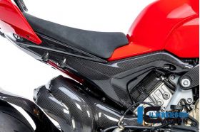 The right subframe cover in gloss carbonfiber for the Ducati V4 Streetfighter is a direct replacement for the original component.