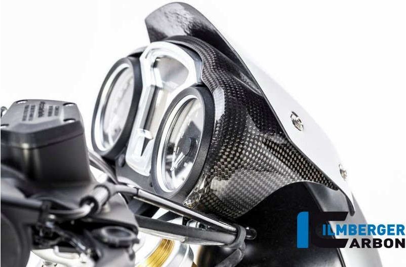 Our additional windshield in carbon for the BMW R Nine T is delivered together with a very nice carbon holder. This holder is mounted around the instruments and is developed for a perfect mounting of the windshield together with a great look. The carbon windshield for the R 90 T finshes not only the design of the bike, it gives also a bit more windprotection while faster driving.