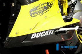 The lower fairing in carbon for the Ducati models 848/1098/1198 has a distinctive closed design in the lower area in comparison to the original. Thus, dirt accumulation on the bottom of the motorcycle is minimised while still allowing for good heat dissipation.