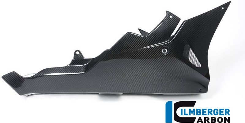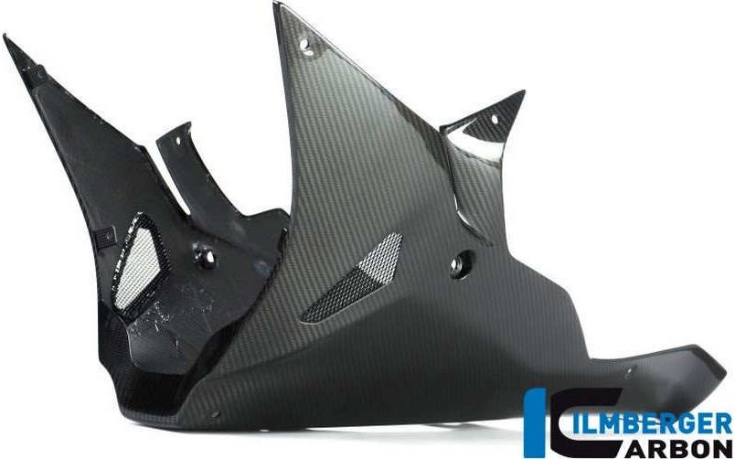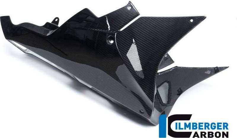 The 1-piece street carbon engine spoiler for the BMW S 1000 RR (2017 ) is made from special high-temperature prepreg carbon material and was designed for use with the original exhaust system, as well as with full racing exhaust systems. Our bellypan is longer than the original part and it covers the pre-exhaust. Please note that you need our fairing holder kit
