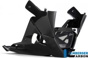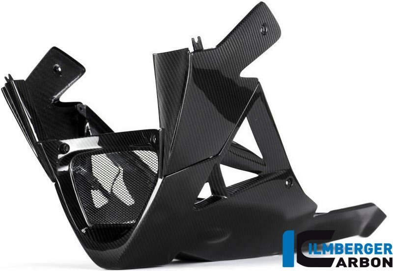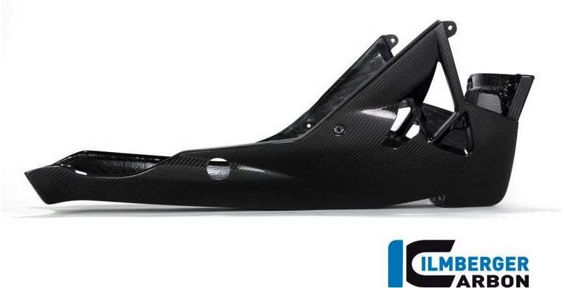 This bellypan in carbon matches perfectly with the wonderful design of the Aprilia Tuono V4 models. These 3 piece bellypan kit includes both sidepanels for attaching the bellypan onto the original sidefairings of the bike.