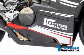The bellypan fits perfectly with the attached Akrapovic Slip On System and the original side panels, it is closed at the bottom for collecting any leaking liquids. The high-gloss surface pronounced the sporty character of the Panigale V4 / V4 S Racing.