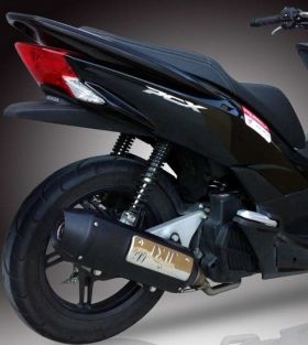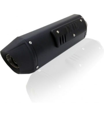 Silencer manufactured from AISI304 stainless steel with black lacquer finish.Asymmetric and Conical end cap, manufactured in aluminum with high temperature black lacquer.