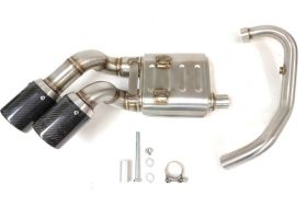 Silencer manufactured from AISI304 stainless steel with a satin polished finish. End cap and protector manufactured from high temperature carbon fiber epoxy resin with bright polished finish.