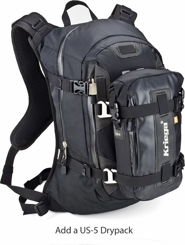 Incorporating Kriega's Quadloc-lite™ system, the harness is angled away from under the arms giving total freedom of movement. Once set, the pack is exceptionally convenient to use with none of the re-adjustment necessary on conventional harness systems.