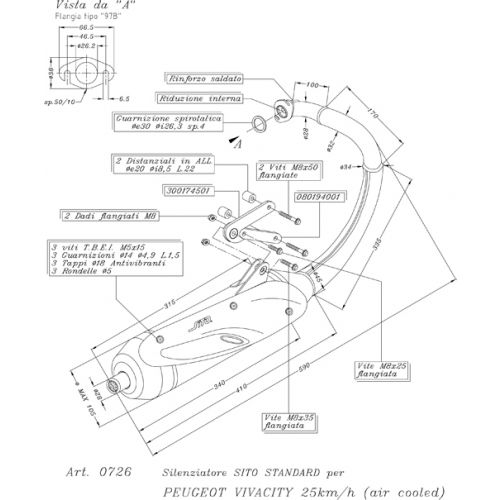 SITO PEUGEOT VIVACITY 50 (25km/h-air cooled) E-APPROVED STEEL FULL SYSTEM