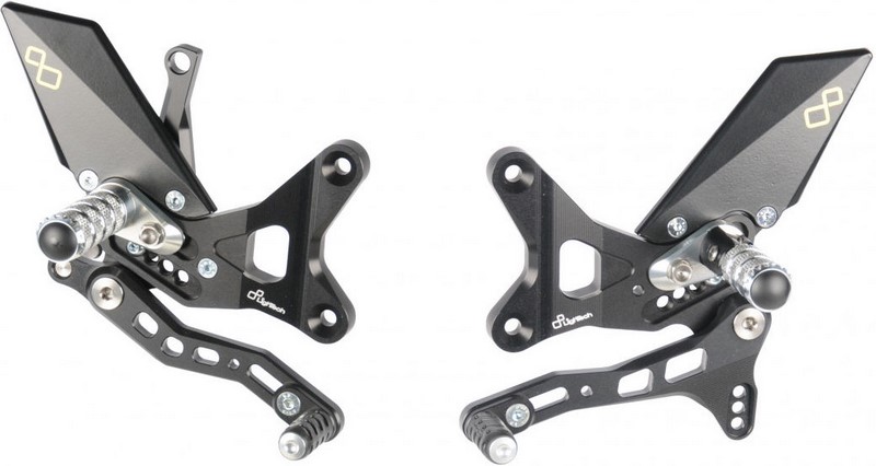 Rearsets are manufactured with footrest supports anodized in different color with a lightweight but strong