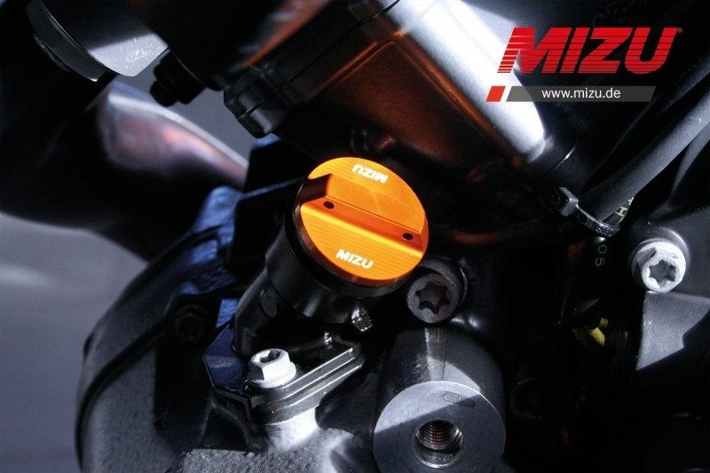 Optic that inspires ! Our oil filler plug is made from high quality aluminium and anodized in orange. You don´t need tools for the MIZU oil filler plug, you can easily unscrew the screw by hand.
