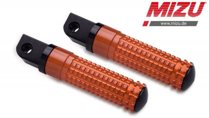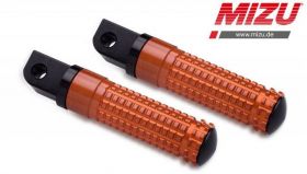 Our MIZU Race footpegs are maximally resilient, provide ideal grip through a milled surface, as well as security in every situation. Say goodbye to your old unwieldy footpegs and swap them with our lightweight sporty race footpegs. So that the driving pleasure is not limited to the racetrack, our footrests are delivered with ABE (Vehicle operation licence) and allow access to racing gear for everyday use.
