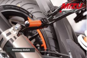 Our MIZU Race footpegs are maximally resilient, provide ideal grip through a milled surface, as well as security in every situation. Say goodbye to your old unwieldy footpegs and swap them with our lightweight sporty race footpegs. So that the driving pleasure is not limited to the racetrack, our footrests are delivered with ABE (Vehicle operation licence) and allow access to racing gear for everyday use.