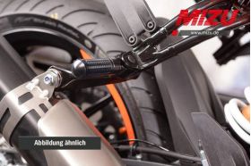 Our MIZU Race footpegs are maximally resilient, provide ideal grip through a milled surface, as well as security in every situation. Say goodbye to your old unwieldy footpegs and swap them with our lightweight sporty race footpegs. So that the driving pleasure is not limited to the racetrack, our footrests are delivered with ABE (Vehicle operation licence) and allow access to racing gear for everyday use.