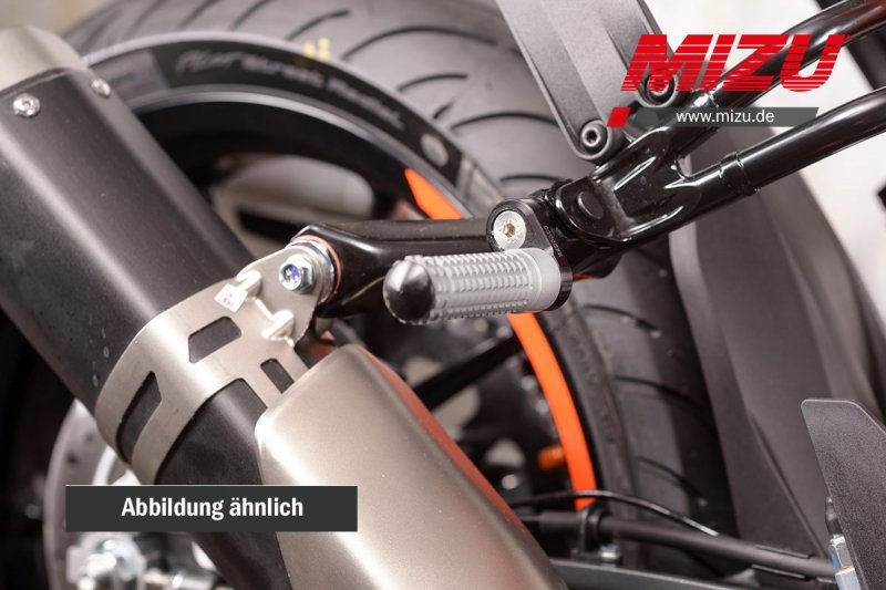 Like our brake and clutchlevers, you can now adjust your footpegs to avoid annoying slipping. The difference comes from the internal adjustment for a perfect, sporty design. Individual adjustment of the MIZU Flex footpegs to your sitting position as well as changing the distance to the controls is possible. The footpegs can be adjusted in eight different positions. So that the driving pleasure is not limited to the racetrack, our footrests are delivered with ABE (Vehicle operation licence) and allow access to racing gear for everyday use.