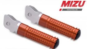 Our MIZU Race footpegs are maximally resilient, provide ideal grip through a milled surface, as well as security in every situation. Say goodbye to your old unwieldy footpegs and swap them with our lightweight sporty race footpegs. So that the driving pleasure is not limited to the racetrack, our footrests are delivered with ABE (Vehicle operation licence) and allow access to racing gear for everyday use.