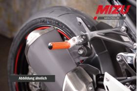 Like our brake and clutchlevers, you can now adjust your footpegs to avoid annoying slipping. The difference comes from the internal adjustment for a perfect, sporty design. Individual adjustment of the MIZU Flex footpegs to your sitting position as well as changing the distance to the controls is possible. The footpegs can be adjusted in eight different positions. So that the driving pleasure is not limited to the racetrack, our footrests are delivered with ABE (Vehicle operation licence) and allow access to racing gear for everyday use.