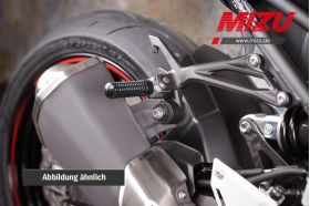 Our MIZU Race footpegs are maximally resilient, provide ideal grip through a milled surface, as well as security in every situation. Say goodbye to your old unwieldy footpegs and swap them with our lightweight sporty race footpegs. So that the driving pleasure is not limited to the racetrack, our footrests are delivered with ABE (Vehicle operation licence) and allow access to racing gear for everyday use.