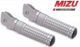 Our MIZU Race footpegs are maximally resilient, provide ideal grip through a milled surface, as well as security in every situation. Say goodbye to your old unwieldy footpegs and swap them with our lightweight sporty race footpegs. So that the driving pleasure is not limited to the racetrack, our footrests are delivered with ABE (Vehicle operation licence) and allow access to racing gear for everyday use.