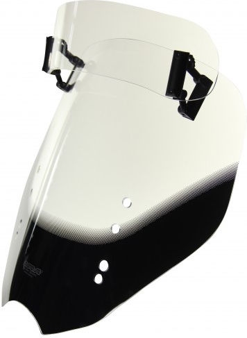 This advanced design of Touring screen has a uniquely mounted spoiler at its rear edge which, without the use of tools, can easily be adjusted into one of seven positions to suit your (and your passenger´s) needs. Positioned on the top rear edge of the screen for maximum effect, the air current is spread out and slowed down, virtually eliminating turbulence. The result is airflow deflected away from the rider to allow a more relaxing, upright riding position, at high speed on long trips. Your passenger can also benefit from the improved airflow as the spoiler position can be injusted to suit their needs too. Available in clear and smoked grey.