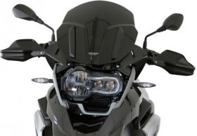 The Touring Screen has a similar shaped base as your bike´s standard screen but, typically, is longer and taller. Its extra length and height is created by an upwardly sloping rear section over its entire width, designed to deflect wind pressure away from the rider, ensuring an easy, relaxing ride - even on long trips. For some models with very upright screens as standard, to avoid creating unnecessary turbulence, the Touring Screen is just simply extended without any further upwards angle. Available in all MRA-colors.