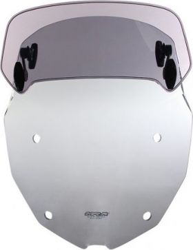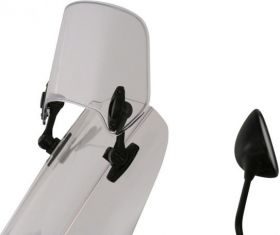The X-creen windshield consists of a basic windshield and the adjustable X-creen spoiler. The scope of delivery includes two joint versions: single hinged joint "S" and double hinged joint "D" that can optionally be mounted. We recommend model “S” for customers who are comfortable with the height of the windshield and merely wish to adjust the angle of the spoiler. Customers who consider model “S” to be too high or low may try model “D” which allows for a height adjustment of 110mm and, at the same time, an adjustment of the spoiler angle regardless of the spoiler height as well of the space to the basic windshield. Hence, X-Creen can be optimally adjusted to meet the client’s individual needs.
