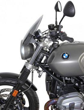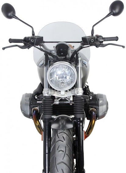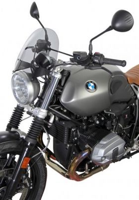 The new BMW R nineT Scrambler is a robust motorbike that combines an authentic scrambler aesthetic with innovative BMW technology. The relaxed, upright seating position and raised handlebars ensure a relaxed tour, but does expose the rider to heavy headwind. This is where the small MRA touring screen comes into the picture. Visually designed to match the Scrambler, the screen mounts onto the triple clamp using two metal brackets at a maximum length of 28 cm with a round headlight cutout at the bottom, the screen strikes a perfect balance between improved cool looks and riding experience. The touring screen is available in clear, smoke grey and black mounting hardware is included.