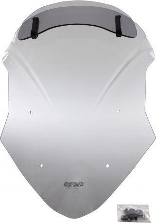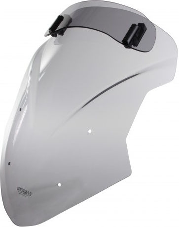 The Vario touring windscreen (VTM) from MRA has a spoiler on the top end of the windscreen that can be adjusted to a total of seven different positions, which functions as a rear-flow spoiler, and so alleviates the wind pressure exerted on the rider. And all that while also reducing turbulence. At its highest level, the windscreen reaches an entire length of 54cm. The Vario touring windscreen is available as clear and in smoky grey.