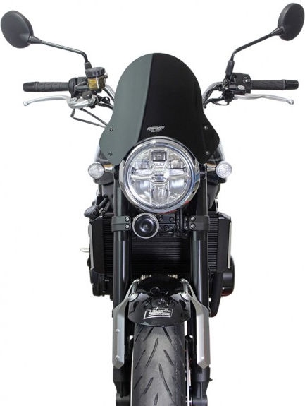 This beautiful retro bike with seventies paintwork, a round headlight that emits LED light, equally round instruments and the oval tail light: everything on this bike has been chosen and put together to create a harmonious overall look. We also add in a matching windscreen, which is a perfect match to the overall look. Our windscreen is 29cm long. It is attached to the lamp holder using the brackets provided in the scope of delivery and it increases the riding comfort significantly. Available in clear, smoky grey and black.