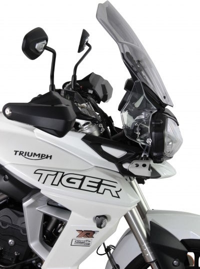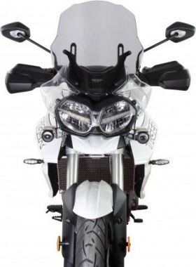 At home on the open road or out in the wild, the medium-class Tiger 800 in its 2018 iteration now has anti-lock brakes, traction control and cruise control added. The XC version also has spoked wheels compared to the XR version with its cast alloy wheels and Showa suspension. The sleek three- cylinder engine with its lively response is simply a joy to ride. At a length of 44 cm, the MRA type T touring screen provides effective shielding from the wind and relief from wind pressure. The touring screen is available in clear, light tinted (smoke grey) and elegant jet black.