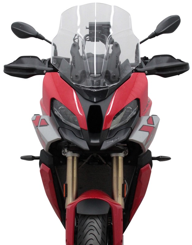 "S1000XR - Touring windshield "TM" 2020-" BWM refers to the S1000XR as Adventure Sport Bike which is already delivered with very good equipment ex works. The S1000XR which has more clearly been designed for tours does, however, not lose any of its dynamics. For this BMW, MRA offers three different screens: The touring screen (TM) with a total length of 44 cm is 2 cm longer than the original screen and offers good wind protection also on longer tours. The touring windscreen is available in colourless, smoked grey and black. "S1000XR - Touring windshield "TM" 2020-"
