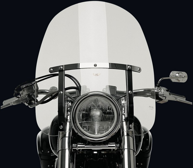 The NATIONAL CYCLE Windshield Dakota gives the typical US custom look to any bike: Classic outline, protecting height and high gloss chrome-plated steel carrier. The use of this 4,5 mm strong high impact acrylic windshield enables relaxed riding even on long trips and in wind and weather. This high end screen is manufactured in the US, easy to install and absolute custom-fit owing to a type based carrier system. An edge protection is not necessary. With ABE.